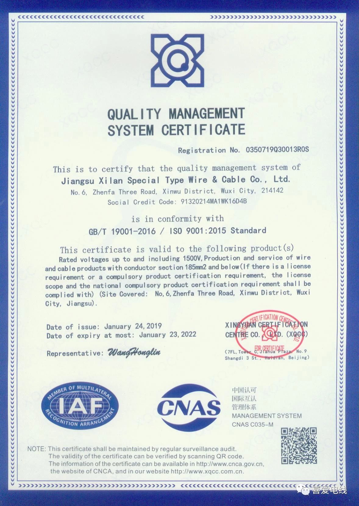 喜愛電線所有產(chǎn)品均有質(zhì)量體系認(rèn)證,產(chǎn)品合格證書。產(chǎn)品足米,質(zhì)量放心,爭做電線產(chǎn)業(yè)領(lǐng)導(dǎo)者。